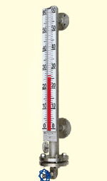 液位計根據浮力原理和磁性耦合作用研制而成。當被測容器中的液位升降時,液位計主導管中的浮子也隨之升降,浮子內的永久磁鋼通過磁耦合傳遞到現場指示器,驅動紅、白翻柱翻轉180。,當液位上升時,翻柱由白色轉為紅色,當液位下降時,翻柱由紅色轉為白色,指示器的紅、白界位處為容器內介質液位的實際高度,從而實現液位的指示。